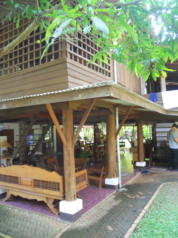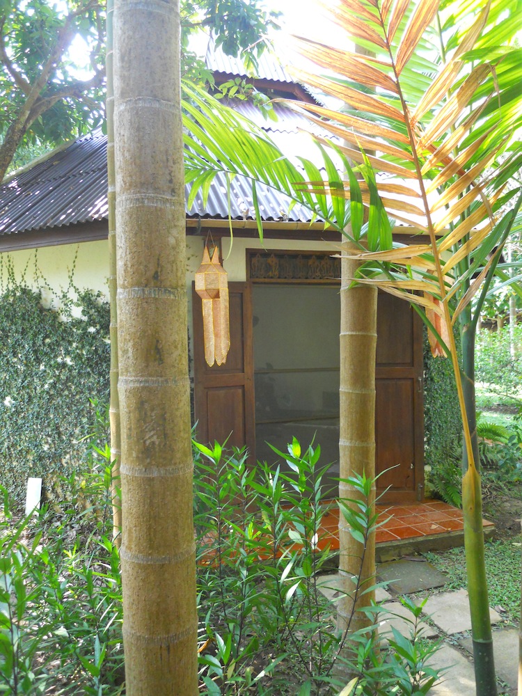 The two founders and carers for this place are Homprang and Christopher. I fell in love with Homprang the moment I met her. Unfortunately for me, she is married to this great guy Christopher. The first thing she did when she heard of my recent ailment was fix me a herbal rice soup with a mug of herbal tea. I was given a room and rested until dinner which was delicious as are all the meals here. Just being here on this two acre property is a treat. Lawns and trees, a pond, and old wooden houses that they bought locally, took apart and reassembled to Christopher’s designs with common areas on the ground and sleeping above.