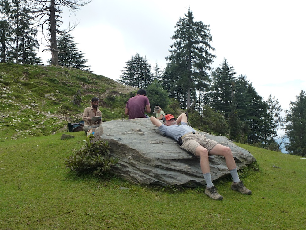 When I first conceived this adventure, it was along the lines of what I later wrote in my invitation. I had this romantic vision of tramping through the mountains to our day’s destination and, after setting up camp, we trekkers finding comfortable spots with vistas to inspire for a long sitting meditation. My using the word ‘romantic’ should alert you to the fact that the actual yatra was a very different experience.